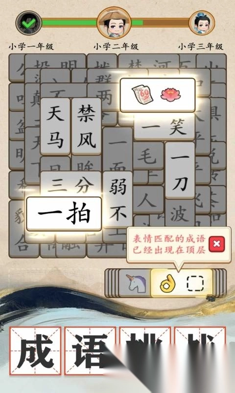 2. 采用类似羊了个羊的叠叠消除玩法,并融入成语知识,实现寓教于乐。
