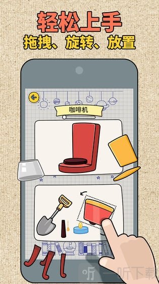 这款游戏操作极为简便,极易上手,玩家仅需用手指在画面上滑动、点击,就能改变各类物体的位置。然而,若想顺利通关,还是存在一定难度的。游戏整体画风清爽宜人,给人带来舒适的视觉感受。而且,每个关卡的题目都不尽相同,需要玩家开动脑筋去思考解答。当看到一个个物体被成功拼凑出来时,玩家会收获满满的成就感。