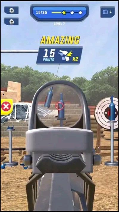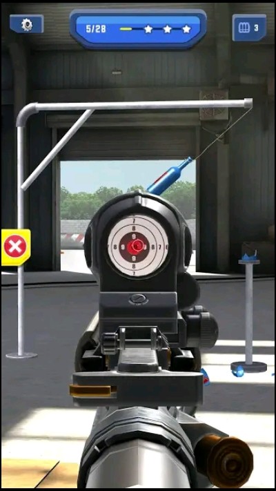 如手枪、冲锋枪、突击步枪等,竖屏操作,瞄准游戏中的标靶射击,点击画面进行射击,完成不同的射击挑战。