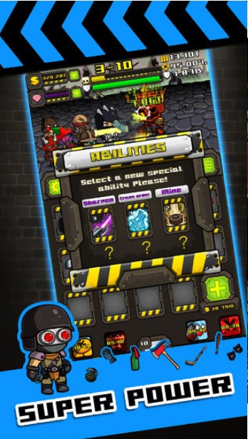 除了玩法上非常的独树一帜以外,游戏中还有英雄战士的养成升级机制,达到一定的等级会自动解锁相应的英雄,且使用金币可进行能力提升,但即使满级也只是增加的是攻击,防御力还是那么的脆弱。