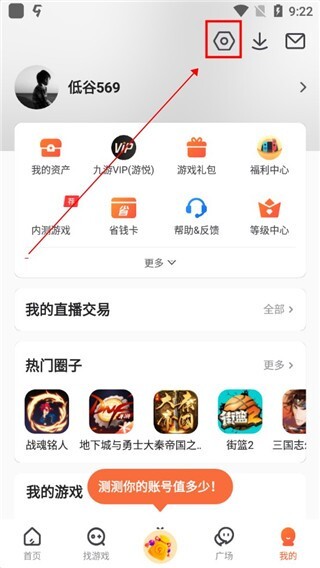 在本站九游并打开,点击我的按钮;