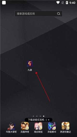 找到手机中的九游并点击进入。