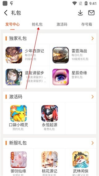 在抢礼包界面中找到自己所玩的游戏并点击进入领取。