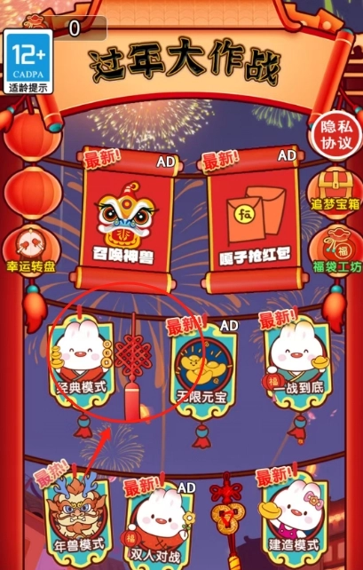 1、点击开始,年味十足超热闹,关卡花样多到爆。