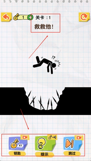 2、在游戏中尝试逆向思考,使用不同方式找出解决方案,用意料之外却合理的方法帮助火柴人脱险。