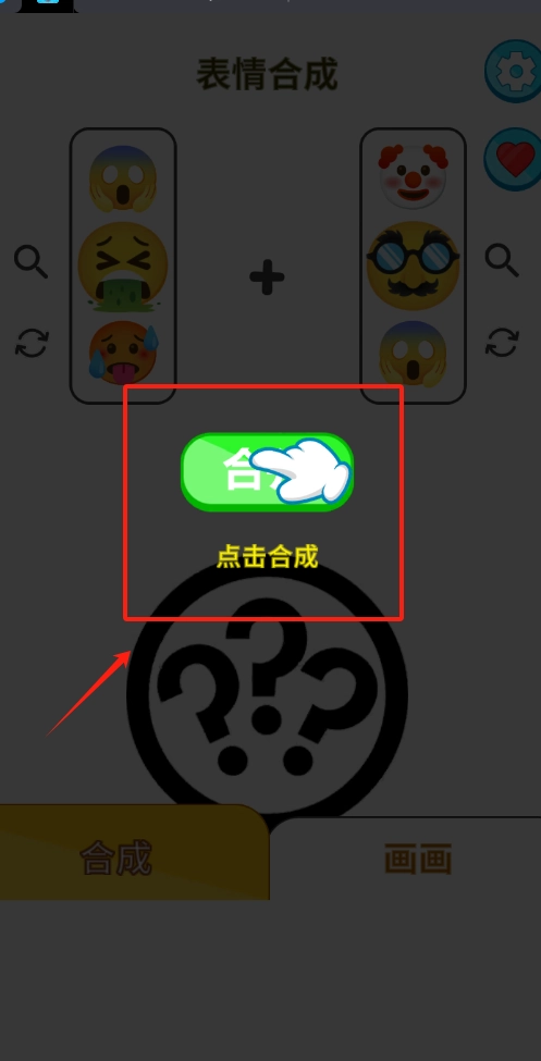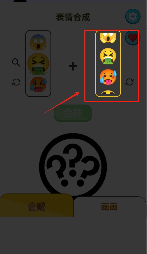 1、左右点选表情图标,中间加号组合,按下绿色合并按钮生成新表情。