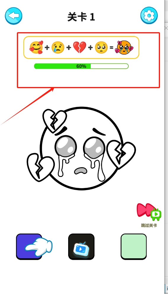 3、观察表情等式,进度达60%时可点右下角跳过当前关卡。