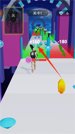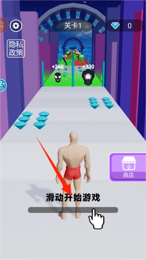 1、左右滑动屏幕即可启动游戏,角色将自动向前冲刺迎接挑战。