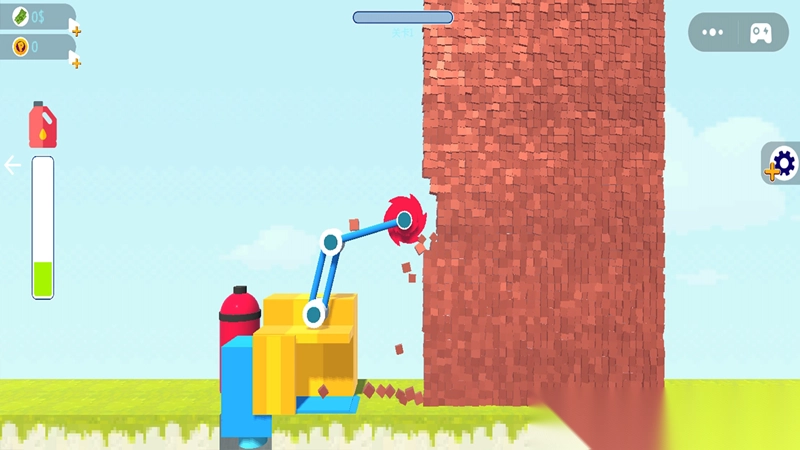 1、玩家操控吊车进行拆墙,通过滑动屏幕控制钩子方向与力度,点击释放钩子撞击墙体。
