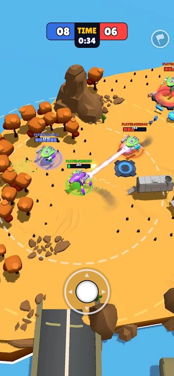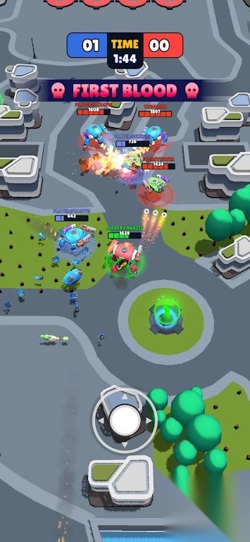 1. 故事设定在未来科技世界,玩家将操控具备各异功能的机器人,在竞技场内进行3V3的团队对抗,最终目的是捣毁敌方基地或是战胜所有对手。