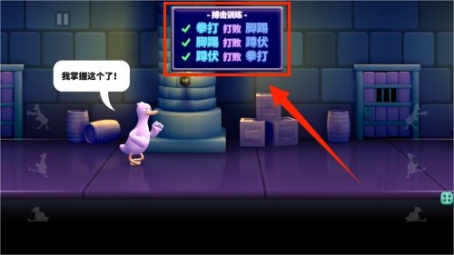 1、左右两侧是工具栏,分别代表:拳击、脚踢、蹲伏三种攻击模式。