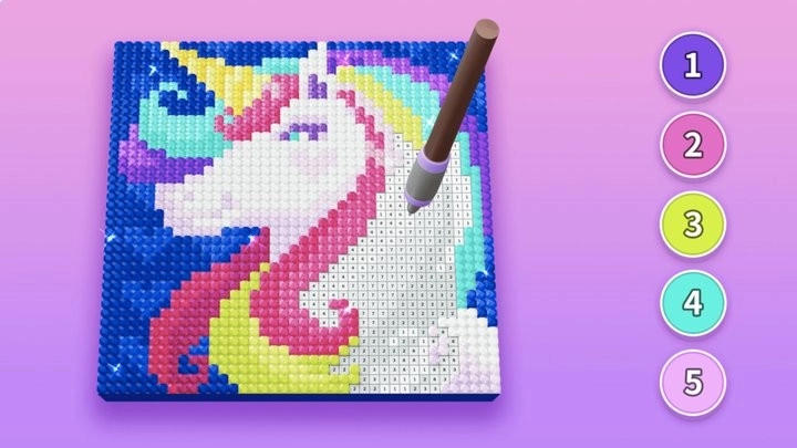 1、把数字逻辑和艺术创作巧妙融合,按照对应数字填充色块就能完成精致的像素画。哪怕是毫无基础的用户,也能迅速收获绘画带来的成就感。