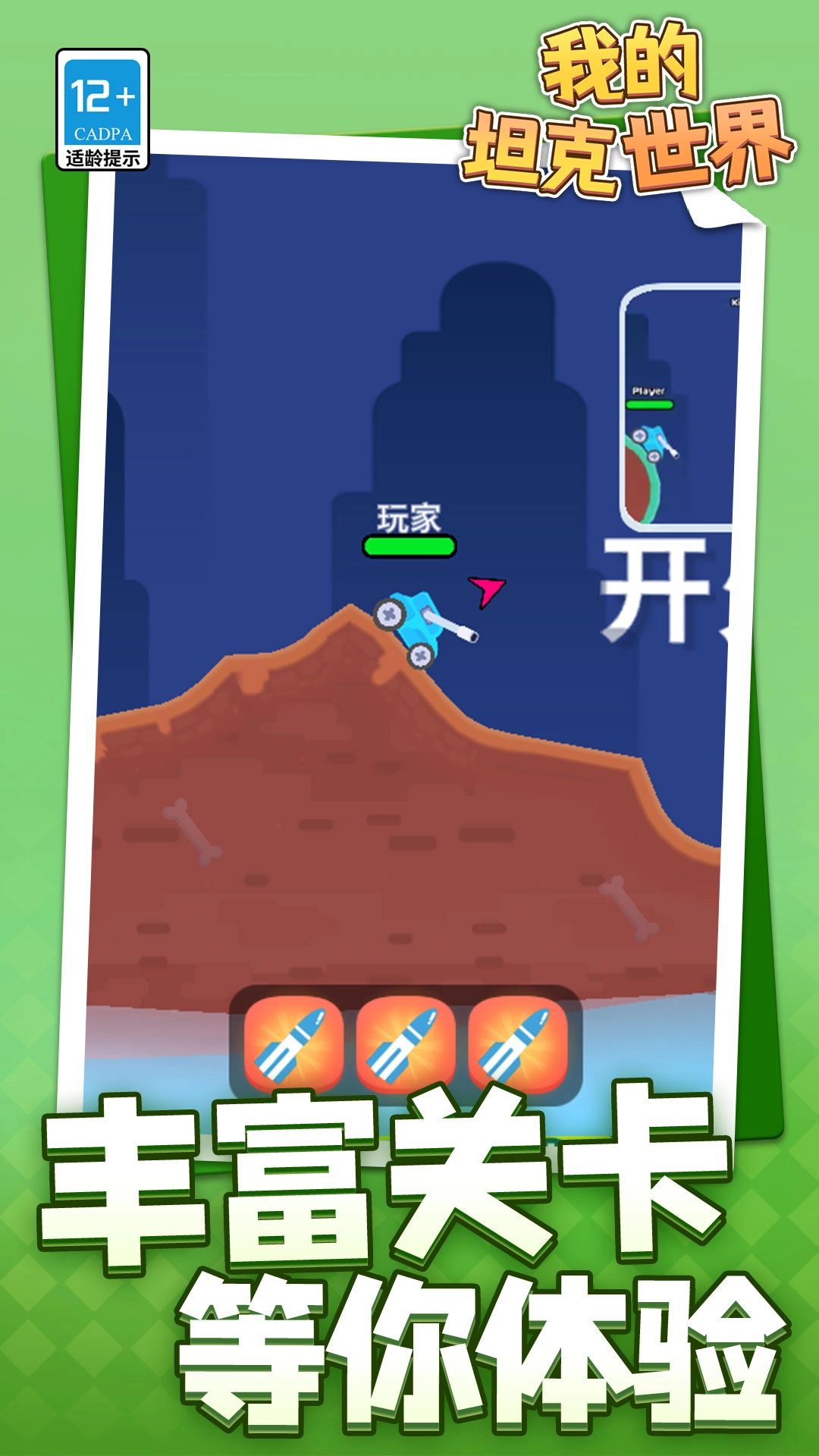 1、操作轻松上手,玩法充满巧思,左摇杆控制坦克移动,点击即可发射武器,无论哪个年龄段的玩家都能轻松体验。