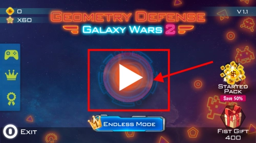 1、打开几何塔防2,点击按钮进入游戏。