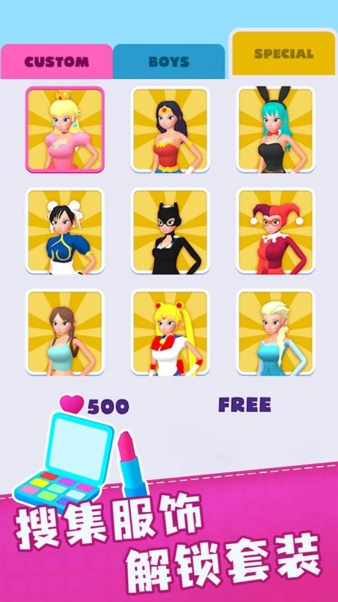 2、超丰富的时尚单品资源库,汇聚了500多款设计师打造的服饰与发型配件,风格上覆盖复古、朋克、森系等诸多类型,能充分满足不同审美喜好人群的穿搭搭配需求。