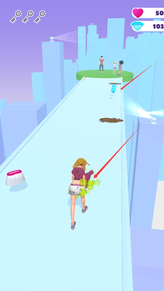 3、奔跑过程中,注意躲避泥潭,发型钻石都要获取。