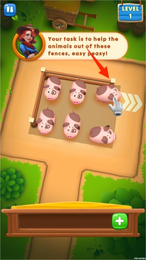 2、点击小猪,使它离开农场。
