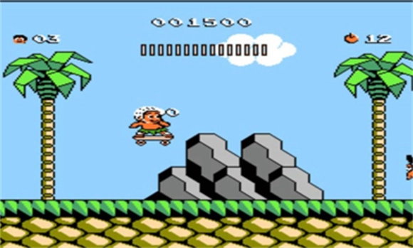 7、1-5:海岸场景,初始11点生命值。这一关掉血速度快,需要快速推进。出场时可以只骑龙或者只带回旋镖,因为很快就能捡到一把斧头,不然捡到的就是1000分的花。第一个蛋里是斧头或花,第一只红色跳跳章鱼后面的云彩站上去会立刻下沉,要留意;下坡后第二个蛋是红心蓝龙,之后会遇到一朵放闪电的云,需小心;第三个蛋里是吸血虫,后面还有一朵放闪电的云;第四个蛋是回旋镖,接着会出现一条跳起来的箭鱼。