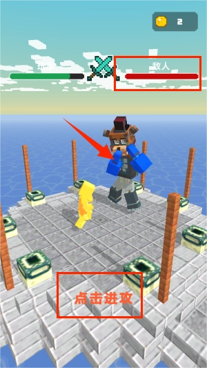 3、上方红色代表敌人的能量条,点击敌人进行进攻,当他的能量条变成0,就消灭完成啦。