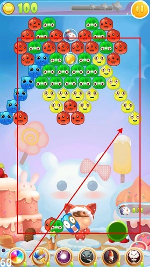 2、核心消除规则:当三个或三个以上相同颜色的泡泡连接在一起时就能消除,需要合理安排消除的先后顺序,以此触发连锁反应来扩大消除的区域范围。
