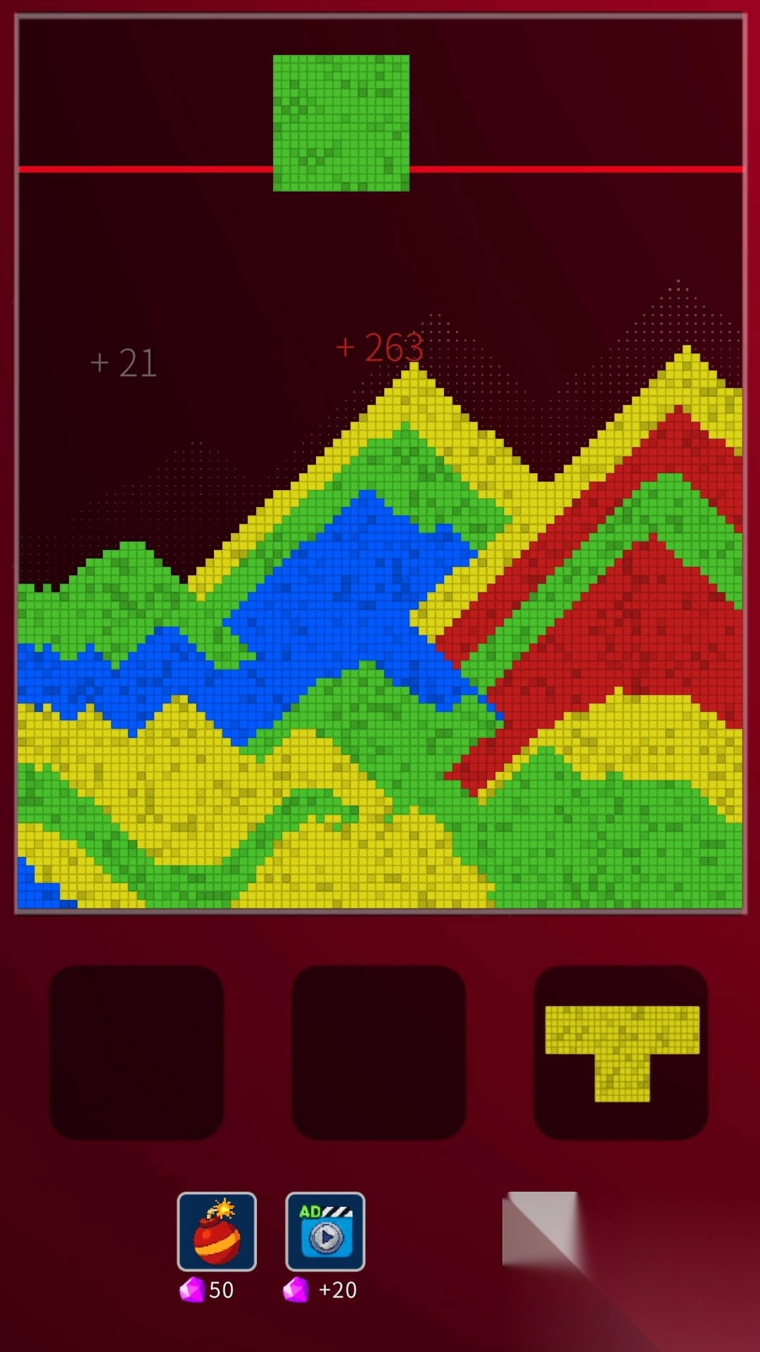 3、沙粒的流动会对后续方块的落点与堆叠形态产生影响,玩家需要结合沙流的走向,来规划方块抛下的位置和时机。