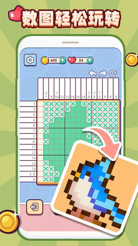 1、核心玩法机制需要玩家依据方格中的数字提示展开逻辑推理,借助填色的操作来逐步揭开隐藏的图案,这一过程对玩家的空间想象力和数字敏感度都是一种考验。