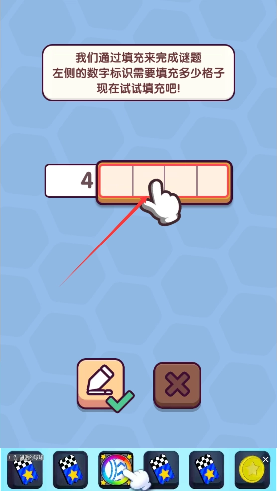 1、通过填充完成,左侧数字代表需要填充多少格子。