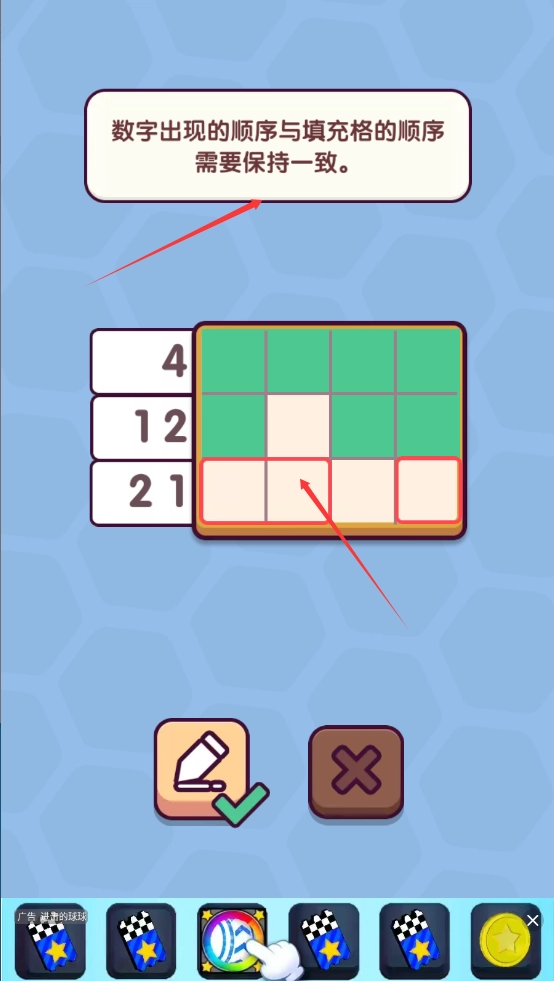 2、数字顺序需要与填充格顺序一致。