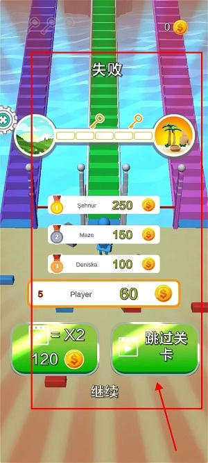 3、闯关成功即可,如果失败点击“继续”即可。