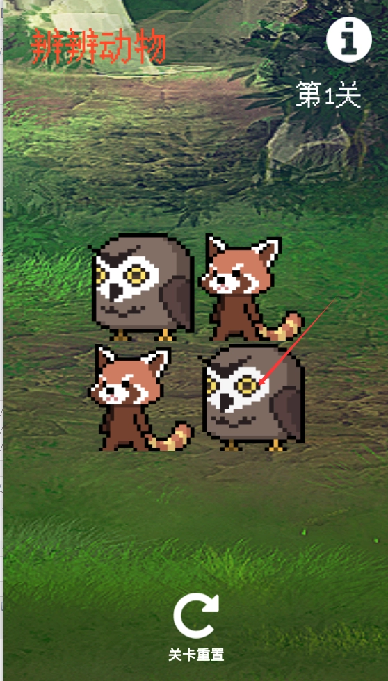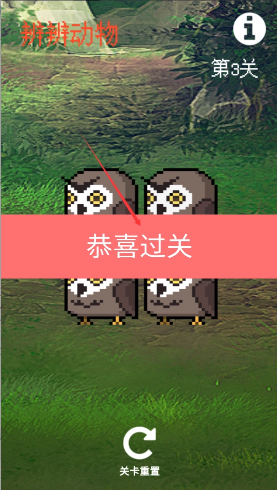 2、点击动物,把动物变成一样就闯关成功。