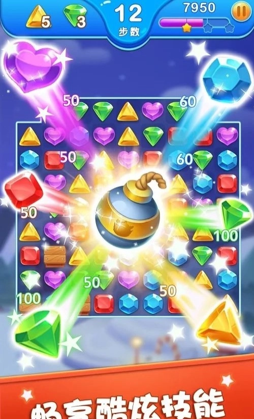 3、动态特效渲染技术,不同宝石组合会触发专属爆破动画,带来震撼的视觉冲击效果。