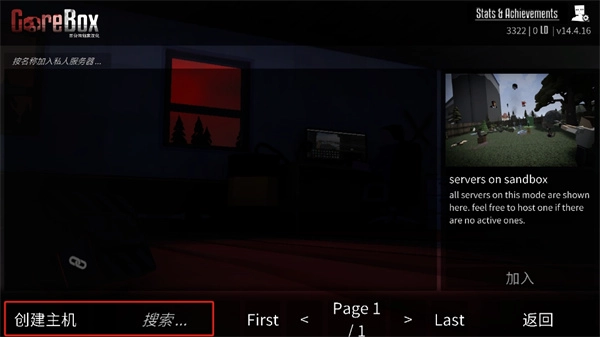 3、若好友已创建房间,你可点击搜索进入;若好友尚未创建房间,则需点击创建主机来新建房间。