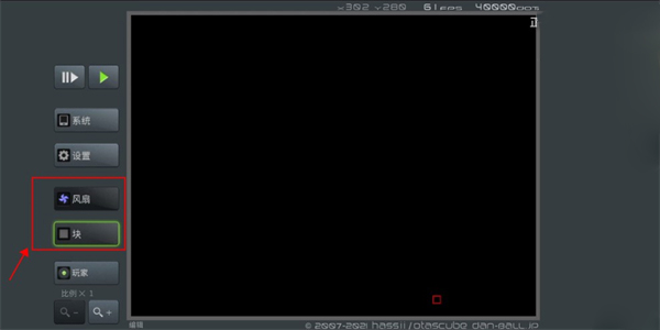 1、在进行场景制作时,把下图里的选项设定为风扇和块。