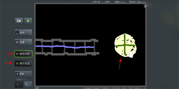 5、换成塑性炸药和硝化甘油,用硝化甘油在前方画一个十字线,用塑性炸药画满十字线。