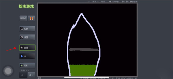 5、点击暂停键,将熔岩放置在金属顶的上方。
