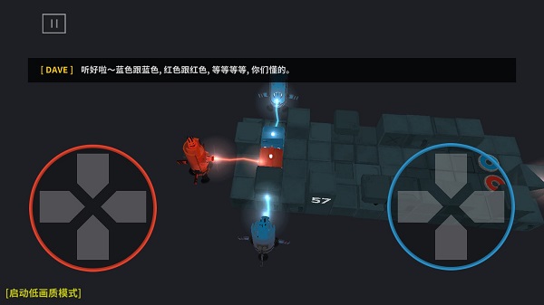 游戏中,红黄蓝绿四种颜色分别代表着四位玩家,他们要在灰色砖块铺设出的一条条道路上行动,通过相互配合来清扫路上的障碍,最终各自找到自己颜色所在的目的地即可算作胜利。然而游戏对于操作和配合有着比较高的要求,如果其中一步走错或者不小心碰到机关,都会导致游戏全盘皆输,这就需要玩家之间能有足够的耐心或者有较好的操作能力了。