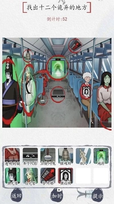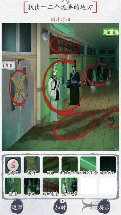 1、玩家需要在恐怖氛围的图片中找出隐藏的不合理场景元素,体验紧张刺激的脑力挑战;