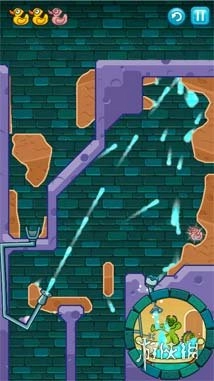 3、接着,借助墙壁的反弹力,把水流引导并汇聚到右侧,这样鳄鱼就能得到洗澡水了。