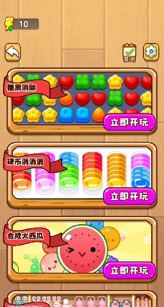 1、除经典的连连消除玩法外,还涵盖了硬币消消消、合成大西瓜等衍生玩法,以此丰富玩家的体验,避免游戏过程过于单调。