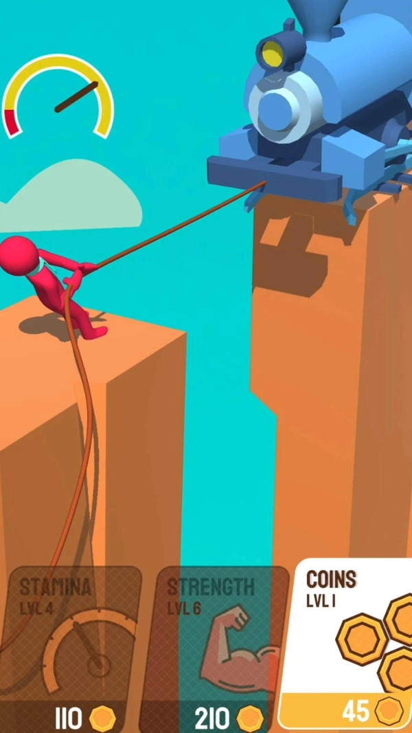 绳索战争是一款超有趣的休闲益智游戏,玩家将在悬崖边展开拔河对决,这是一场力量的比拼。游戏设有丰富的关卡,每关的对手各不相同,可能是人类,也可能是火车之类的特殊角色。挑战胜利后能获取金币,用来持续提升自身各项属性,从而提高胜率,快来试试吧!!!