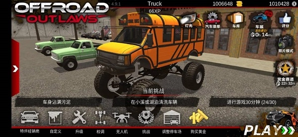 2、亡命越野汉化版游戏中可以用金币提高你的越野车的性能,让你的车更好!