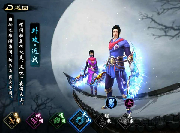 《天龙八部》与端游版本维持着高度的契合度,职业设定也愈发完善。以峨眉为例,它在游戏里归为内功远程攻击职业,是当前游戏中独一无二拥有治疗技能的门派,生存能力出色;丐帮则属于近战外功攻击类型,技能大多围绕近身作战设计,兼具输出实力与一定的生存韧性,能攻能守;天山同样是近战外功攻击职业,其攻击伤害较为突出,但血量和防御处于普通水平,闪避与命中属性较高,技能多侧重于爆发输出与控制效果;逍遥属于内功远程攻击职业,技能体系以远程输出为主,从逍遥的门派技能特点不难发现,这是一个既具备输出能力,又拥有“放风筝”(远程消耗)和逃生手段的职业。