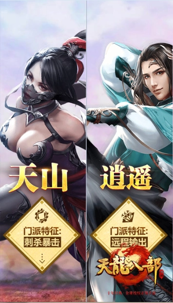 《天龙八部》特别甄选了端游中经典的四大门派,分别是峨眉、丐帮、天山以及逍遥,率先开放供玩家体验。目前可选择的四个门派每一个都将门派特色和江湖气息展露无遗,在门派设定上,