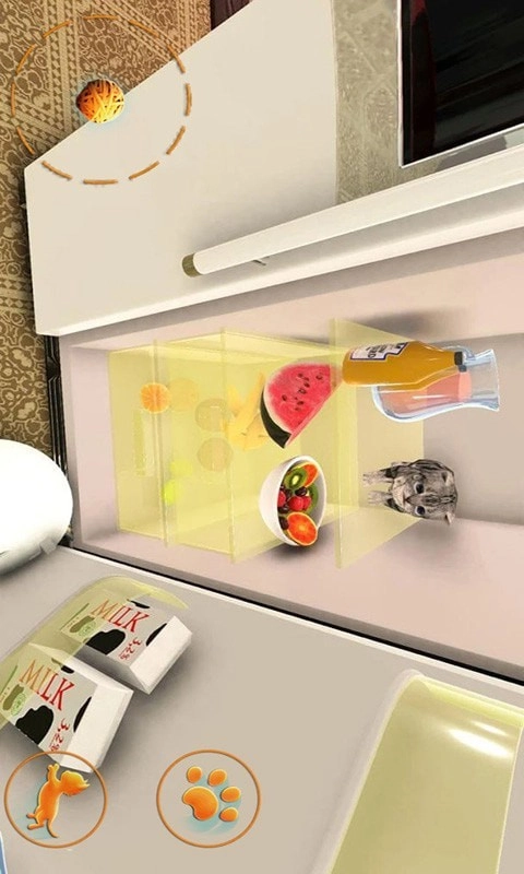 2、美好的一天从拆家开启!操控小猫打碎花瓶、撞飞家具就能获取积分,连续破坏还能得到双倍积分,客厅、厨房、卫生间、卧室任你尽情施展。