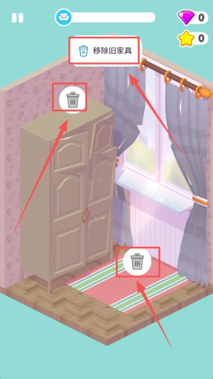 3、移除旧家具,只需要点击物品拖进删除键那里即可。