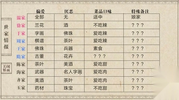 推荐一同邀请的世家名单:温徐玉、于海齐、王隋陈,周家那边可以视情况搭配。 这些世家人物都因为雇佣了大量仆从,导致府中入不敷出,需要从私人库房贴补钱财填补亏空,所以婚前务必积累足够的资金,后续主要依靠仆从积攒声望。按照我的攻略,婚前只需集中精力准备一次,把钱攒够了,婚后的日子会轻松不少。