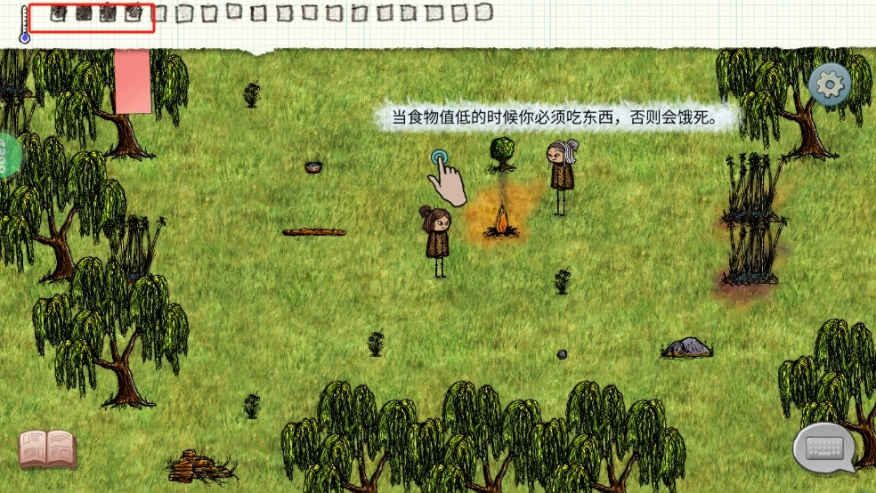 2.游戏会根据时间降低饱腹感,剩下四个的时候角色会死亡。