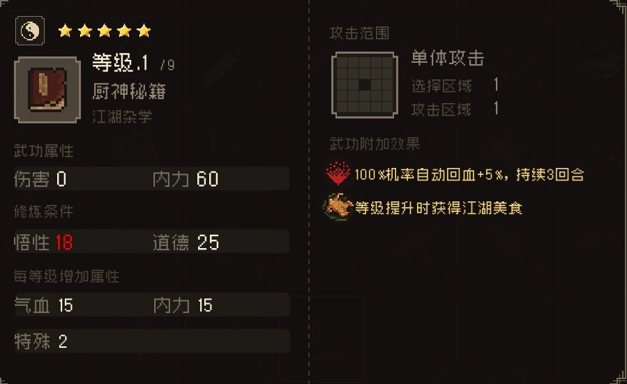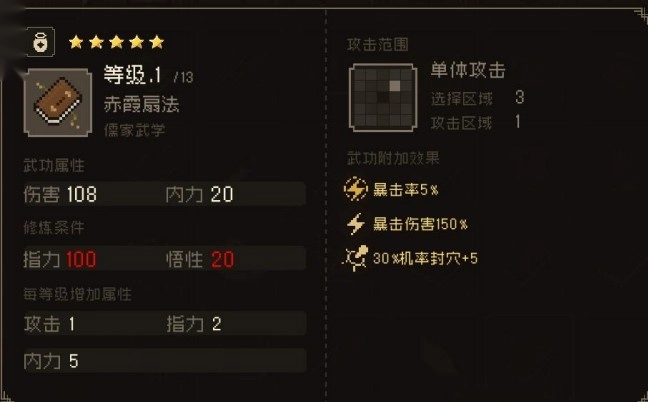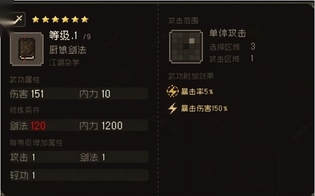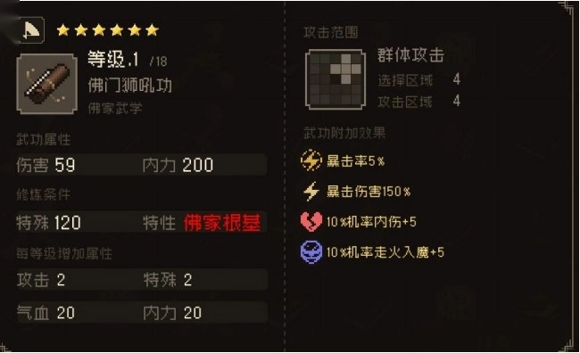 狂风绝尘功 轻功越高伤害越高,自身攻击-5%