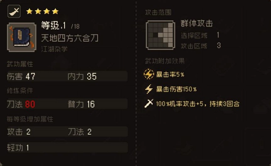 天地四方六合刀 刀法伤害+10,攻击+5%