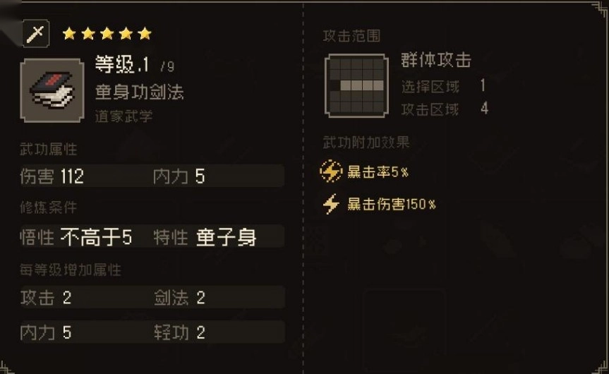 剑法前期群攻,可升级为连城山剑